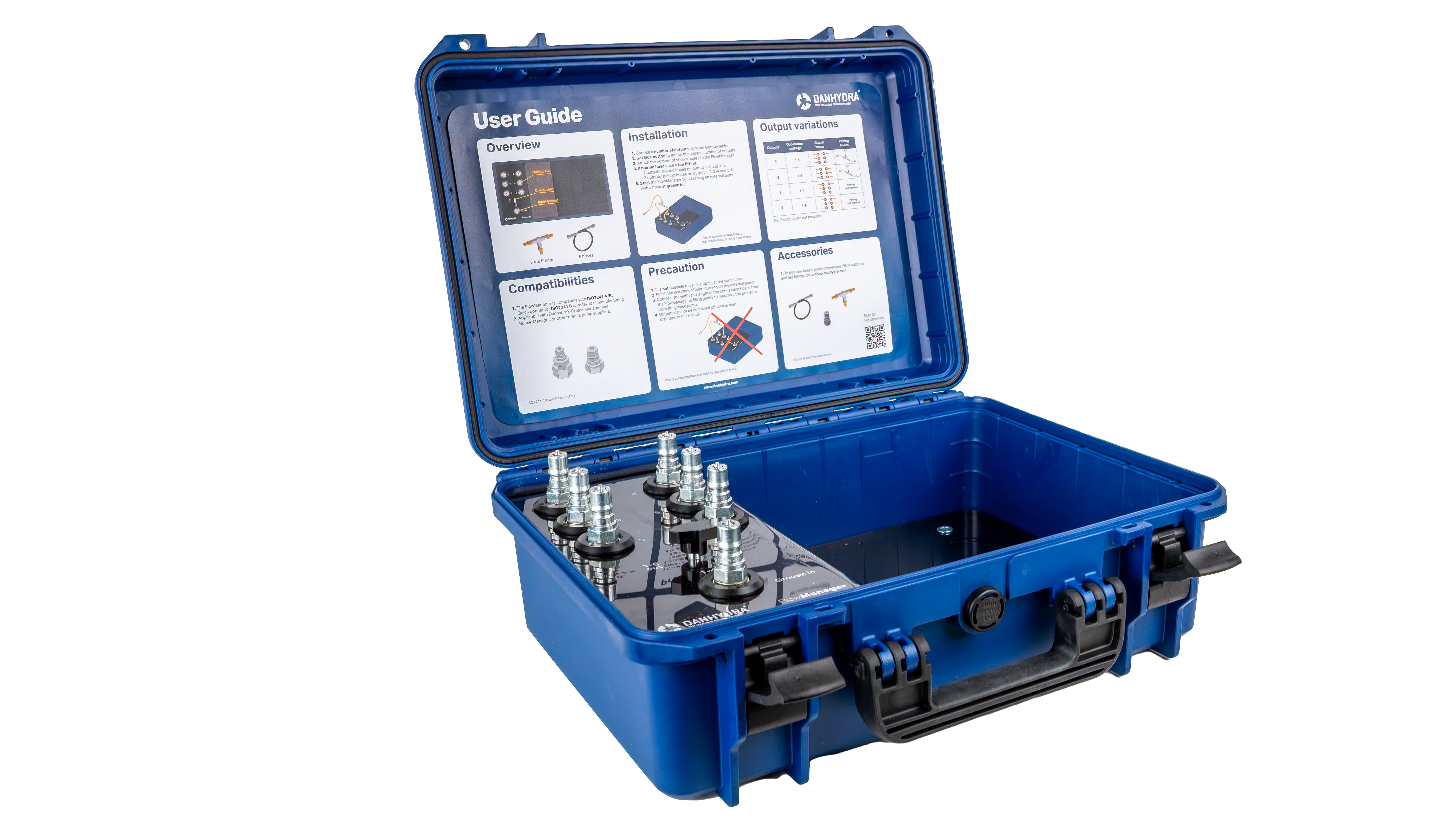The FlowManager ensures a highly accurate and evenly distributed flow of grease from all connected hoses. You can choose between 4 and 6 ports, which makes it possible to distribute between 2 and 6 filling points at once.